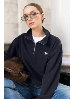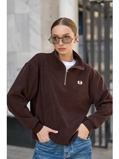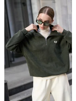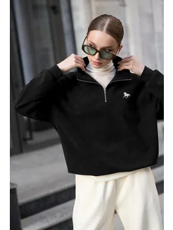 Свитшот оверсайз темно-серый с горлом, полузамок женский