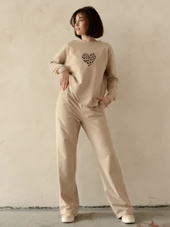 Мягкий трикотажный костюм с принтом леопард