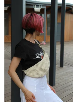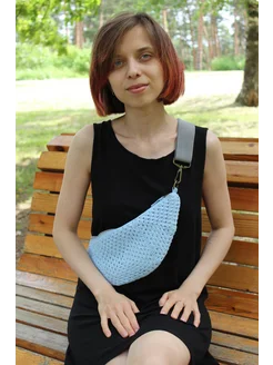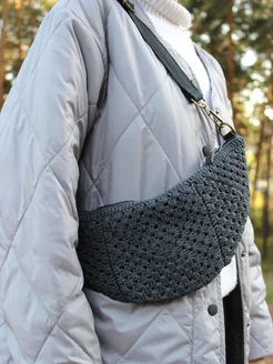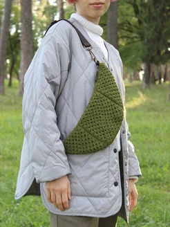 Сумка нагрудная вязаная бананка через плечо зеленая