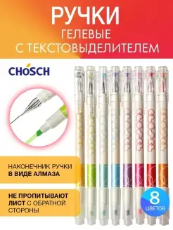 Цветные ручки гелевые с текстовыделителем, 2 в 1, набор 8