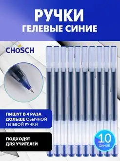 Ручки гелевые синие с большим стержнем, 10 шт, набор