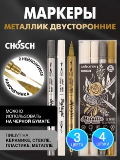 Маркеры металлик, фломастеры для черной бумаги набор 4 шт