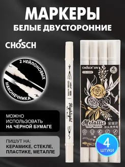 Маркеры белые фломастеры для черной бумаги набор 4 шт