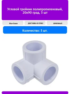 Угловой тройник полипропиленовый, 20x90 град, 3 шт