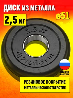 Блин 2,5 кг для штанги и гантелей - диск для грифа 51 мм