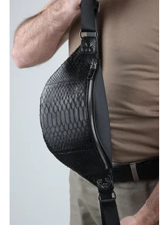 Нагрудная мужская сумка из кожи питона