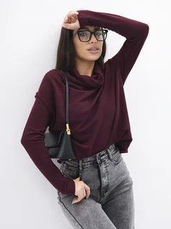 Джемпер с воротником-хомутом, лёгкий трикотаж с блеском