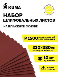 Шкурка в листах влагостойкая P 1500, 230*280мм, 10 шт
