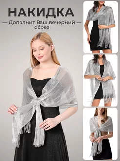 Шарф - палантин вечерний с люрексом серебристый с пряжкой