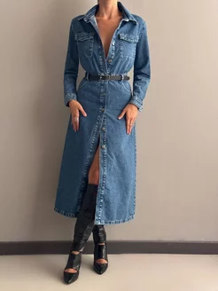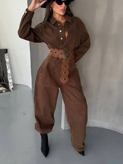 Комбинезон джинсовый оверсайз с брюками и длинным рукавом