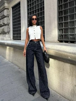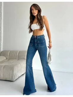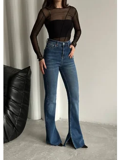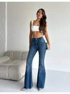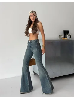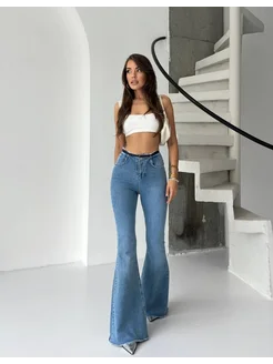 Джинсы клеш от колена с высокой посадой стрейч Турция