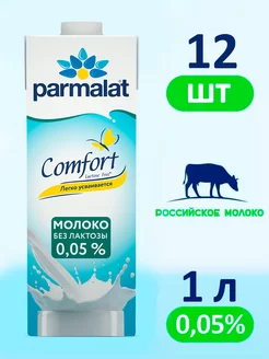 Молоко Пармалат Безлактозное 0,05%, 12 штук по 1 л