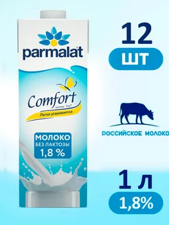 Молоко Пармалат Безлактозное 1,8%, 12 штук по 1л