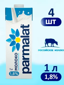 Молоко Пармалат ультрапастеризованное 1,8%, 4 шт по 1 л