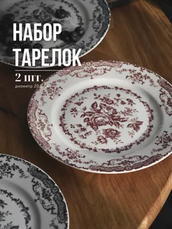 Набор 2 десертные тарелки с винтажным цветочным узором 20 см