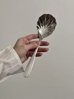 Салатная ложка ракушка серебро красивая в винтажном стиле