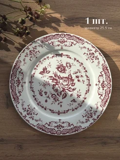 Плоская тарелка с винтажным цветочным узором красная 25,5 см