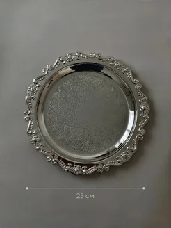 Серебряный поднос металлический круглый стиль винтаж 25 см