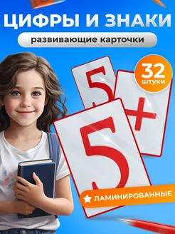 Карточки ламинированные развивающие для детей "Цифры+ знаки"