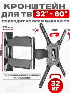 Кронштейн для телевизора поворотный на стену 32"-60"