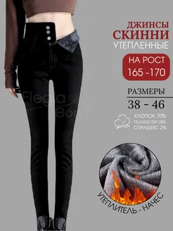 джинсы скинни с высокой посадкой утепленные зауженные брюки