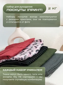 Набор лоскутов и отрезков ткани для рукоделия с принтом 2 кг