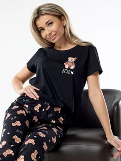 Пижама с длинными штанами и футболкой с коротким рукавом