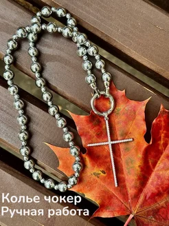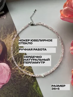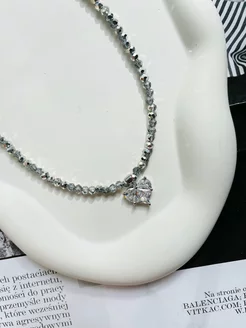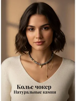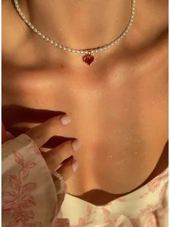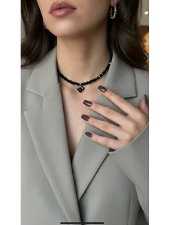 Чокер колье на шею натуральный гематит с кулоном сердце y2k