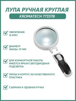 Лупа ручная круглая 16x, 37 мм (2 LED), черно-белая 77337B