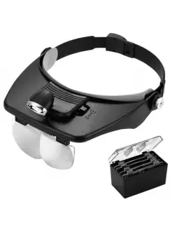 Лупа налобная 1,2 1,8 2,5 3,5x, с подсветкой (2 LED) MG810