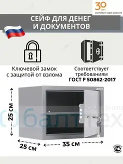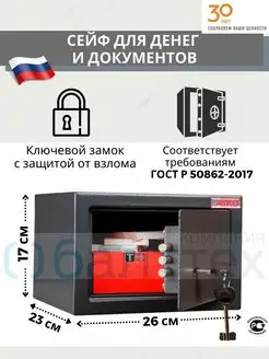 Сейф для дома 17х26х23 см с ключевым замком для денег оружия