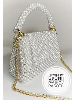 Сумка из бусин жемчужная белая