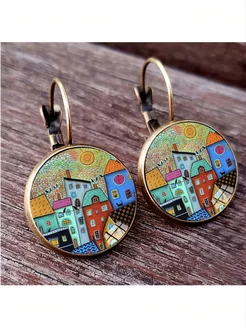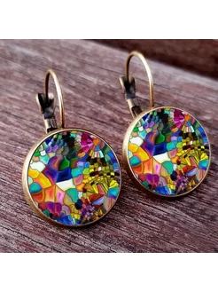 Серьги кольца яркий калейдоскоп