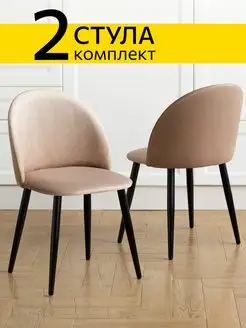 Стул 2 шт кухонный мягкий со спинкой для кухни бежевый велюр