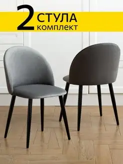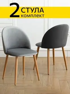 Стул 2 шт кухонный мягкий со спинкой для кухни серый велюр