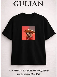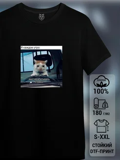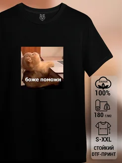 Футболка черная с принтом мемы котик