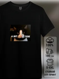 Футболка черная с принтом мемы кошка а вот тебе