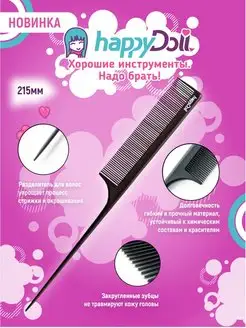 Расческа парикмахерская с хвостиком карбон 210 мм