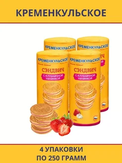 Печенье затяжное Сэндвич с клубничной начинкой 250 г х 4 шт