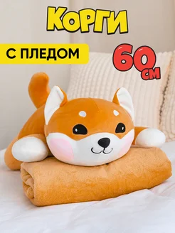 Мягкая игрушка Собака с пледом, корги, 60 см