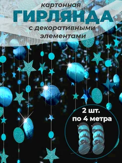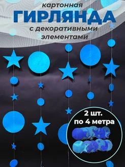 Гирлянда растяжка круги и звезды синяя голубая