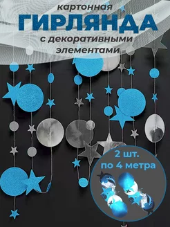 Гирлянда растяжка круги и звезды голубая серебряная