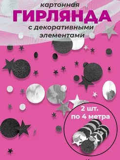 Гирлянда растяжка круги и звезды черная серебряная