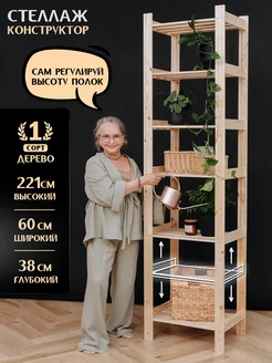 Стеллаж деревянный 221*60*38 см, 6 регулируемых полок