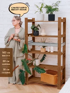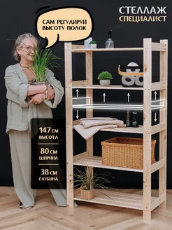 Стеллаж деревянный 147*80*38 см, 5 регулируемых полок