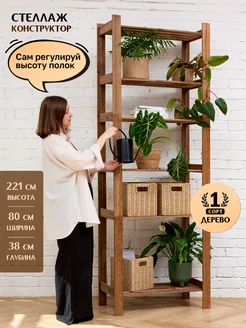 Стеллаж деревянный 221*80*38 см, 6 регулируемых полок