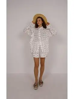 Костюм с шортами и рубашкой оверсайз с воланом из муслина
