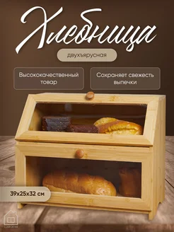 Хлебница с крышкой деревянная двухъярусная