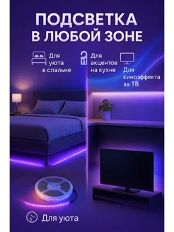 LED лента RGB 5 м для подсветки спальни кухни и ТВ