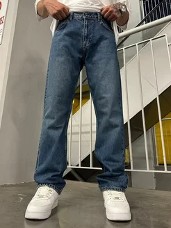 Джинсы бананы мужские зауженные к низу голубые свободные